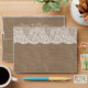 The burlap & lace collection is a stunning design featuring a lovely rustic burlap effect background with a romantic vintage white lace effect trim.