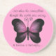 Beautiful butterfly in pink and black on a coaster with motivational quote. "Just when the caterpillar thought the world was ending, it became a butterfly..."