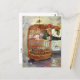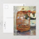 A postcard with the painting, The Cage (1885), by Berthe Morisot (1841-1895), she was a French Impressionist artist. The art critic, Gustave Geffroy, called her les trois grandes dames, the three graces of Impressionism, along with Mary Cassatt and Marie Barcquemond. This painting depicts a wicker bird cage on a table with a ceramic bowl of flowers.