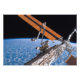 The Canadarm2 and solar array panel wings on the International Space Station featured with airglow.