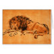 An extinct berber lion crouching,resting, re-elaboration from Dutch painter Rembrandt Van Rijn late 1640s.Classic monogram design on black background,pen and ink drawing in vibrant orange yellow, black colours with old brown parchment effects.