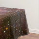 I am very pleased with this purchase. The quality is good, it is heavy and the image decorating it is brilliant and very eye-catching. When I first laid eyes on this tablecloth, still folded and in the transparent covering, it brought a smile to my face and I knew right away it was a good choice. A few days later my wife replaced our old tablecloth with this little gem and was quite satisfied. She noted that it is thick and fits the table very well with just enough hang over (although our dining table is extended by a traditional leaf which we keep in place even if we are not having guests over) and stays put instead of blowing all over the place. The image decorating this tablecloth is brilliant and very eye-catching. It looks even better than it appeared online.