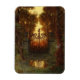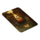 This design features a painting by the German artist Ferdinand Knab. It depicts an elegant iron gate surrounded by stone pillars. It is set in a woodland landscape with overgrown trees and plants. The gate is said to lead towards a great castle. There is a white bird flying in foreground. The sky is orange and red with a beautiful sunset. The scene can perhaps be said to be somewhat spooky and unsettling. The original artwork was painted by Ferdinand Knab in 1881.