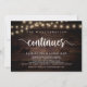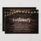 The celebration continues, Wedding Elopement Announcement / Invitation card, in Rustic farm Wood, String Lights design. This is perfect for your wedding reception and post-wedding celebration party. Add your details in matching font / lettering.