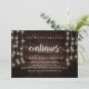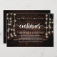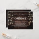 The celebration continues, Wedding Elopement Announcement / Invitation card, in Rustic farm Wood, String Lights design. This is perfect for your wedding reception and post-wedding celebration party. Add your details in matching font / lettering.