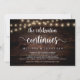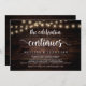 The celebration continues, Wedding Elopement Announcement / Invitation card, in Rustic farm Wood, String Lights design. This is perfect for your wedding reception and post-wedding celebration party. Add your details in matching font / lettering.