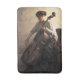 This design features a painting by the American Impressionist artist Joseph DeCamp (1858–1923). It depicts a female cellist as she holds her musical instrument and plays a melody by drawing the bow across the strings. The woman is seated on the edge of a wooden chair as she plays the cello. Her posture is upright but graceful. The cello, which is also known as a violoncello, is a bowed string instrument of the violin family. Its four strings are usually tuned in perfect fifths: from low to high, C, G, D and A. The original artwork was painted by Joseph DeCamp in 1908.
