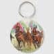 The leading horses round the bend in a thrilling National Hunt race, hooves pounding on the mud.