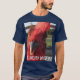 This men's tshirt features a photo on the front of a rooster and the bottom of the photos says The Chicken Whisperer in white font.