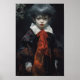 This haunting oil painting style Halloween picture features a pale young boy vampire dressed in black, with a sombre expression on his face. His sharp fangs and piercing gaze create an eerie ambiance, as he stands alone in the midst of a dark and ominous setting. The artist's use of bold, striking colours and intricate brushstrokes creates a sense of depth and texture that draws the viewer in. This stunning piece of AI Art would make an excellent addition to any collection of Halloween or horror-themed artwork, perfect for those who appreciate the darker side of art.