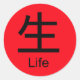 Life , in Chinese and English, on bright red stickers. Stick them everywhere!