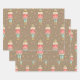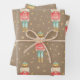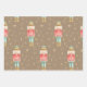 A Nutcracker Christmas holiday wrapping paper featuring a watercolor-painted Nutcracker with sparkling gold stars surround.
