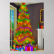 A decorated Christmas tree in the living room with many Christmas presents under the tree. This is a AI generated art.