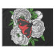 Hand drawn vector illustration of the cinnabar moth on a bouquet of peony flowers