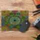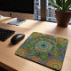 Enhance your workspace with the "Claws of Brachyura" symbolic mandala art mouse pad. Featuring a vibrant crab symbol design that emphasizes security and unity, this durable mouse pad offers high-quality, full-colour printing on a dust and stain resistant cloth cover. With non-slip backing and a customisable design area, it's perfect for adding a touch of art to your desk.