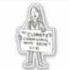 This artwork features a cartoon style illustration of a young student or child with placard, Climate's Changing Why Aren't We.