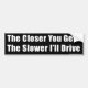 The Closer You Get The Slower I'll Drive bumper sticker by Stickerhound