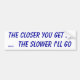The closer you get ...... the slower I'll go Bumper Sticker