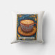 A?n artistic illustrated coffee tarot card theme throw pillow for your kitchen, or cafe. A great gift for a coffee lover.