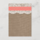 The rustic sand dollar beach wedding collection is a stunning design featuring a lovely rustic burlap effect background with a romantic vintage white lace effect trim finished with a stunning sand dollar and coral ribbon. These Detail Cards can be personalised for your special occasion and would make the perfect matching insert for a wedding suite, bridal shower, engagement party, birthday party and much, much more. These cards can be used to create Detail Cards, Guest Information Cards, Accommodation Cards, Direction Cards, Gift Registry or Wishing Well Cards as well as Ceremony and Reception Cards. Matching wedding items can be found in the collection.