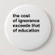 The cost of ignorance exceeds that of education 10 cm round badge