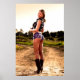 Beautiful country farm girl walking down the Country Mile, Our model has legs forever