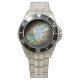 Has heft and feel of expensive stainless steel quartz watches. Good band with safety catch. I removed links, which is easy because engraved arrows show direction to push the linking pins. As always by this seller, the image (a railroad logo) is a perfect reproduction of my emailed image, and is precisely spaced and aligned.