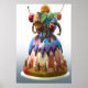 A crazy birthday cake with strange glaze with berries and fruits and strange flavours. This is a AI generated art.