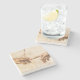 The coasters are gorgeous, a quality feel and heavy weight. They look like a precious archeological find. A rustic stone juxtaposed with a modern floral black and white print. I like the way the print goes slightly imperfect on the cut stone edges giving them a kind-of natural beauty.