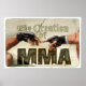 Our version of The Creation zooms in on the two hands with the index fingers touching. Of course, We have the hand outfitted with MMA gloves, resulting in the Creation of MMA. Our version of Michaelangelo's Creation looks great on our Mixed Martial Arts t-shirts, posters, stickers, mugs, buttons and more.