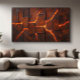 A hellish landscape of textures and colours. This work captures the raw power of the earth in eruption, with cracks revealing a burning fire and an intense palette of tones that evoke power, destruction, and the dark beauty of the underworld.