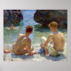 A reproduction of a oil on canvas sketch by Henry Scott Tuke, “The Critics” of 1927, the year of his death. Tuke's twin abiding loves were the sea and boys. This caused quite a stir in Victorian and Edwardian England, but he was nonetheless a member of the Royal Academy. Henry Scott Tuke was born in 1858 York from whence he moved when he was sixteen and entered the Slade School of Art. He travelled to Italy six years later nand between 1881 and 1883 he lived in Paris where he studied under Jean-Paul Laurens and met John Singer Sargent. During this time he met Oscar Wilde and John Addington Symonds. He began his painting in Cornwall in 1883 and his fame gradually grew. In 1914 he was elected to the Royal Academy of Arts having established himself as an independent artist who could afford to work in France, Italy and the West Indies. Tuke died in Falmouth, Cornwall at the age of seventy. This work is in a private collection.