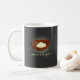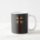 White mug w/black bkgd and cross design on right of mug w/ crown of thorns on left of mug