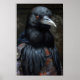 This stunning AI Art image is an oil painting style portrait of a crow lord, perfect for any Halloween or fantasy lover. The crow lord, with its piercing gaze and impressive wingspan, exudes an air of mystery and power. The artist has skilfully captured every detail of the bird's feathers, giving them a beautiful depth and texture that makes them appear almost lifelike. The background, with its dark and foreboding sky, adds to the eerie atmosphere of the piece. It's a truly breathtaking work of art that will add a touch of dark elegance to any room.