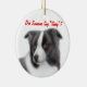 Original Border Collie design by artist Carolyn McFann of Two Purring Cats Studio printed on a customisable holiday ornament for herding dog lovers.