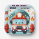 The Cute Hot Fire Truck Engine Safety 1st birthday Paper Plate