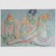 Sweet and colorful image of a dance teacher and her students printed on decoupage tissue paper. The painting is titled Leccion Practica De Ballet by
