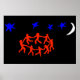 The Dance ~ Modern Art ~ Modern colourful image inspired by . Image shows red dancers holding hands in a circle against a black background with white moon and blue stars. A truly unique design by the artists at the Curio Shoppe. We also have this eye catching image on other products too. You never know what you may find at The Curio Shoppe!