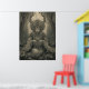 Enter a world of ancient mystery with 'The Dark Seer'. This powerful illustration features a mystical priestess adorned with majestic curved horns and an incredibly detailed floral headdress. Seated amidst a garden of dark roses and surrounded by gnarled, ancient trees, her gaze is both commanding and enigmatic. This monochrome masterpiece, is a must-have for fans of dark fantasy, gothic aesthetics, and intricate line art