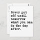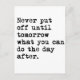 Never put off until tomorrow what you can do the day after.