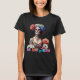 The design for "Day of the Faithful Dead" features a dazzling central image: a beautiful woman with the mask of death on her face, elegantly decorated with flowers that enhance her mysterious beauty. Titled "The Lady of Death", this design pays homage to the iconography and symbolism of this holiday, capturing the essence of the duality between life and death with a representation of elegance and mystery.