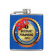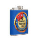 The flask itself is fine. It’s a cheap flask, obviously bought in bulk, however am prepared to overlook that. Given that it is a personalized item, I would have liked to have seen gift boxing instead of the generic packaging. Terrible printing, and/or quality. It’s a cheap, tacky vinyl. It is not cut straight and is also applied in a way that it is overhanging the bottom, causing the glue to catch on items and it will eventually roll and tear, damaging the wrap.