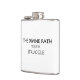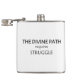 The flask itself is fine. It’s a cheap flask, obviously bought in bulk, however am prepared to overlook that. Given that it is a personalized item, I would have liked to have seen gift boxing instead of the generic packaging. Terrible printing, and/or quality. It’s a cheap, tacky vinyl. It is not cut straight and is also applied in a way that it is overhanging the bottom, causing the glue to catch on items and it will eventually roll and tear, damaging the wrap.