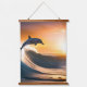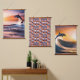The Dolphin is Playing. The set of 3 hangable tapestry depicts a dolphins gracefully gliding through the air as they jump above the surface of the water and playing in a wave of peach and purplish blue hues, with hints of pink and orange throughout. The colours are blended together to create a dream-like atmosphere that evokes feelings of joy, freedom, and serenity. To give a sense of energy so that you feel the playful nature of the dolphin as it swim through the waves. You can personalise to add your own quote or your favourite saying.