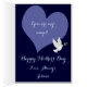 This image is of a white dove carrying a green leaf flying in the air. The heart is arranged on the card with an inscription. A dark blue backround was added. Customise with your own words. A beautiful card for mum.
