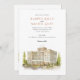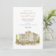 Invite your guests to a truly memorable occasion with this sophisticated watercolor wedding invitation, featuring the iconic Drake Hotel in Chicago. The artwork beautifully captures the grand, classic architecture of this renowned landmark, known for its elegant limestone-coloured facade (creams and beiges) and distinctive reddish-brown or terracotta upper sections, proudly flying American flags. Rendered in a soft, refined watercolor style, the hotel is gracefully framed by stylised trees with green and yellowish-green leaves, adding a touch of natural softness to the urban grandeur. This invitation exudes timeless Chicago elegance and is perfect for a classic, sophisticated city wedding. The front elegantly presents your wedding details, while the reverse side offers "The Finer Details" for guest information. The colour palette includes stately creams, beiges, warm reddish-browns, various shades of green and yellowish-green for the foliage, and soft atmospheric tones.
