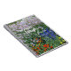 A personal sized, spiral bound notebook that features a photo image of colourful, summer garden flowers that include Zinnias, pink Nicotiana, and Blue Salvia along with a quote by essayist Ralph Waldo Emerson that reads, "The earth laughs in flowers" and is printed in white, stylised text. A lovely, floral design! Use as a journal or to keep important notes.