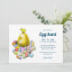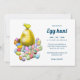 The Easter chick stands on top of the large golden Easter egg, which stands among all the small colourful Easter eggs ready for this year's Easter.