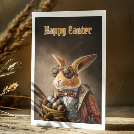 easter bunny dressed in old hunting outfit ready for the egg hunt