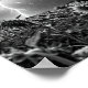 This powerful black-and-white composition captures a moment of intense atmospheric tension over a vast field of sunflowers. In the foreground, the sunflowers are rendered in sharp detail, their petals glistening with raindrops as they bow slightly under the weight of a torrential downpour. The mid-ground features a jagged, multi-pronged lightning bolt that tears through the dark, heavy clouds, illuminating the horizon with a brilliant, white-hot glow. The high-contrast edit amplifies the texture of the rain streaks and the swirling, turbulent storm clouds, creating a cinematic and moody atmosphere that pits the delicate beauty of the flowers against the violent energy of the storm.